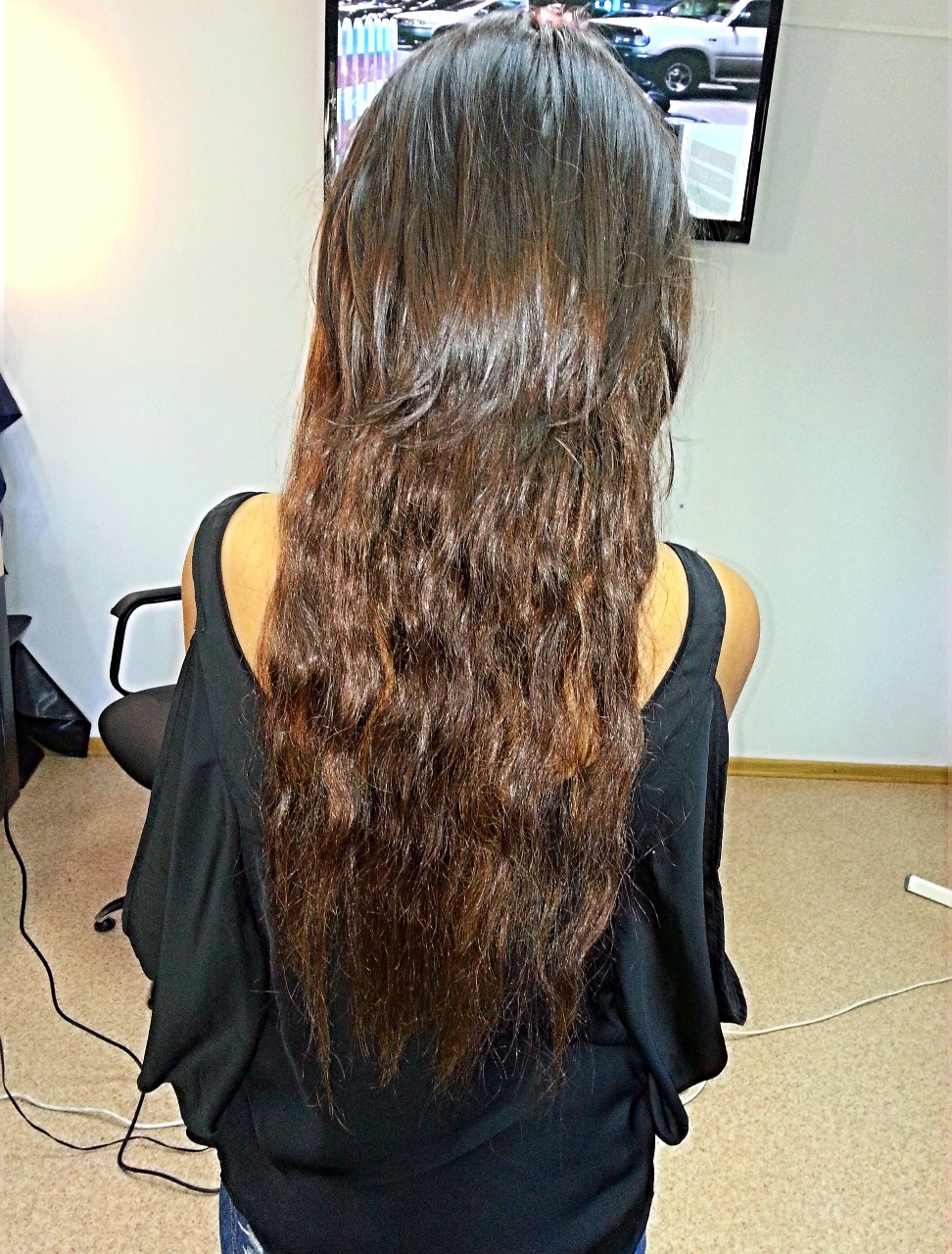 Во-вторых, работа по наращиванию волос была выполнена просто ужасно! Видно было переход от своих волос к наращенным, очень большие капсулы и пряди! Я потом чуть без своих волос не осталась!